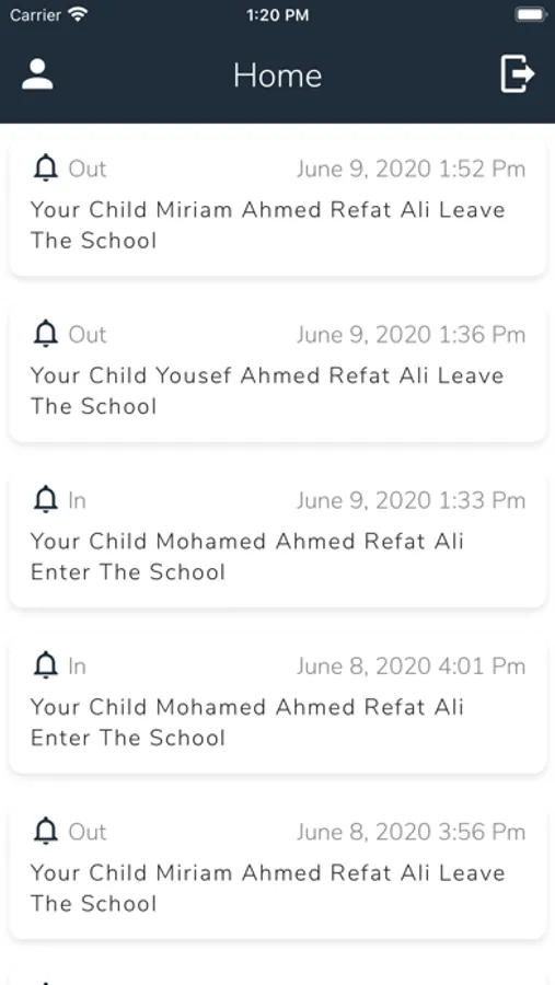 this app allow parents to track their children entry and exit of their school by sending notification to them and user have profile with their child and their commitment