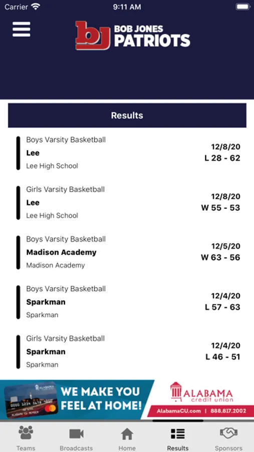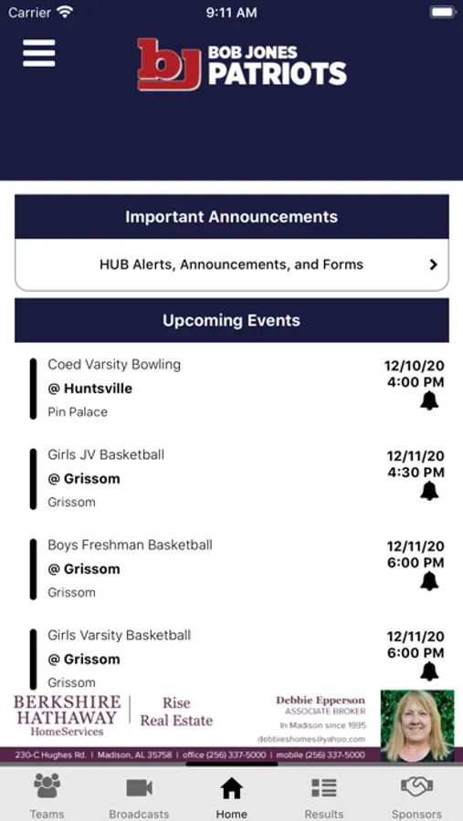 - Supporters: Special Thanks to local boosters and supporters of Bob Jones Patriots Athletics with a directory including website and in-app calling.