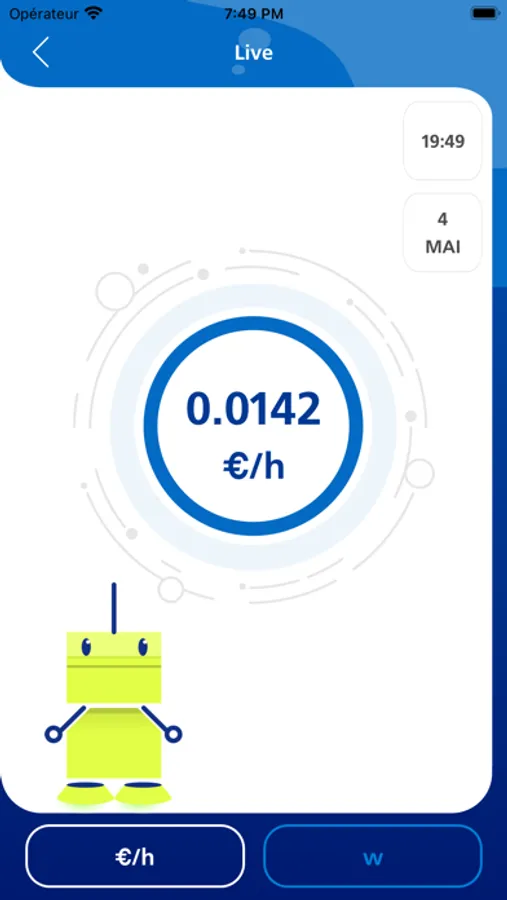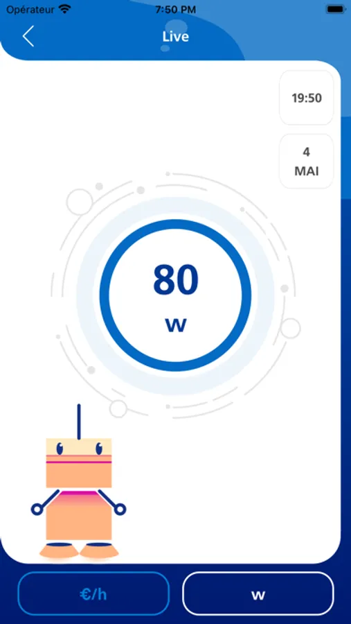 A l’aide à l’application, vous pouvez visualiser en live votre consommation ainsi que l’évolution de la courbe dans le temps. Vous pouvez également être alerté lorsque vous risquez de dépasser votre budget ou la puissance de votre logement.
