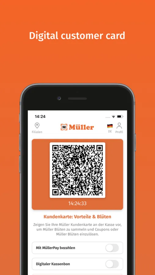 We reward your loyalty! You collect Müller Blossoms on your customer card by making purchases and referrals. You can redeem these for future purchases and save money. In addition, receive a welcome bonus of 500 Blossoms for your first purchase of €20 or more by simply scanning the app at the cash register.