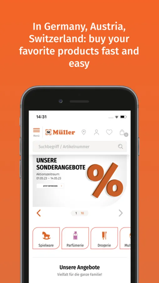 Cross-border use: Use the Müller App in several countries – Germany, Austria, Switzerland, and Slovenia. You now have the option to change the country in the app. After changing the country, the app content will be available in the corresponding local language.