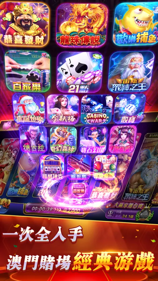 百家樂、21點、SLOTS老虎機、捕魚機、輪盤賭、骰寶、Video Poker、Casino War通通都有,在這裡你可以找到流行澳門娛樂場的各類玩法,100%完全重現實體機台!精彩刺激,拒絕無聊,享受2022線上最真實的賭場體驗!