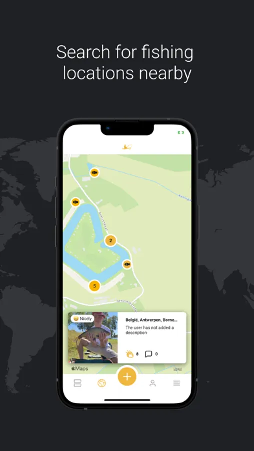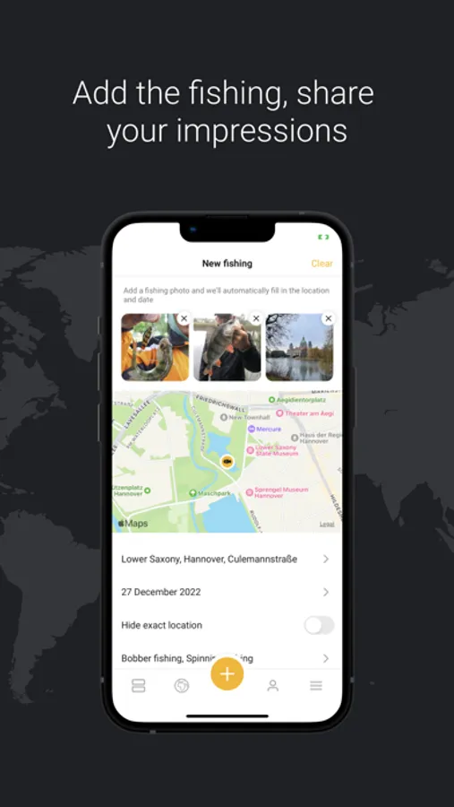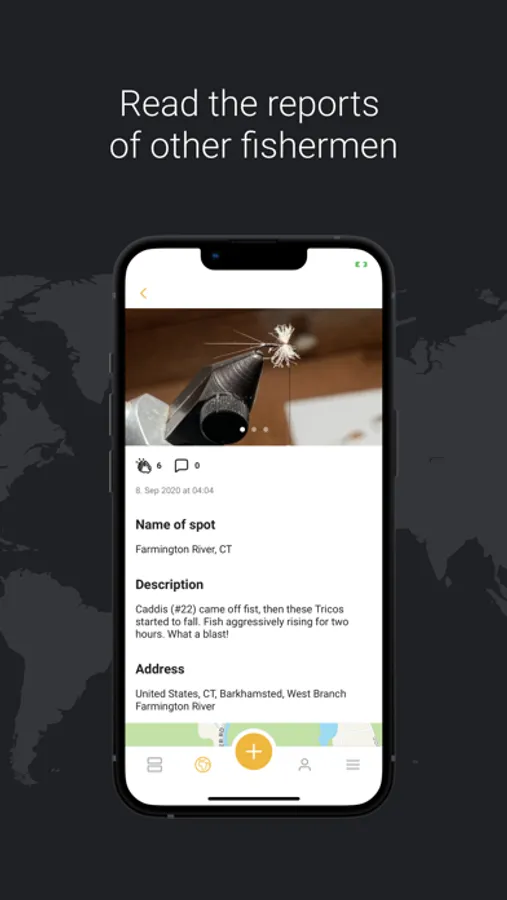 Create a map on which your trophies and your failures will show off because any experience in the pond, river, or ocean will be useful and interesting for other anglers!