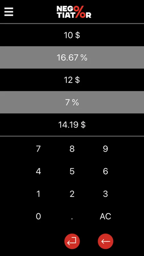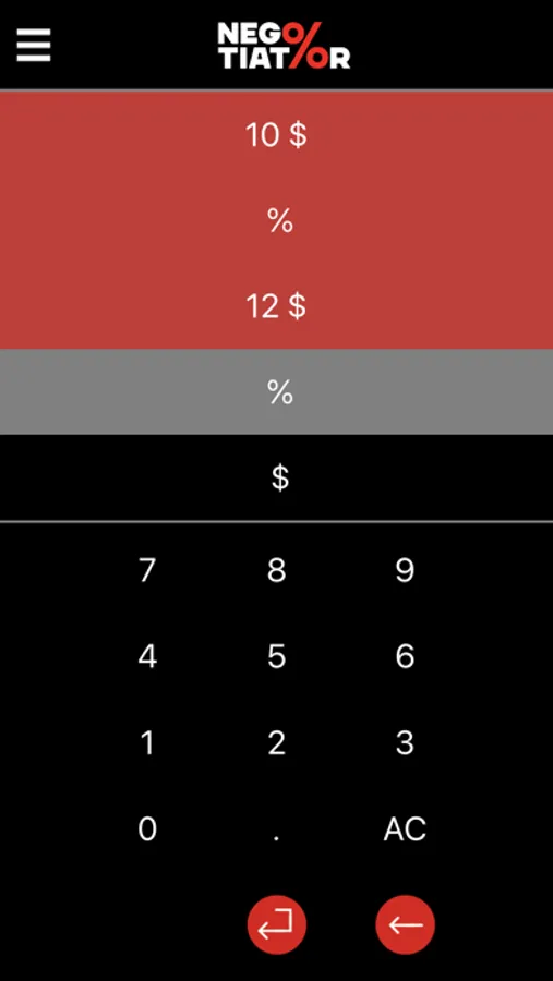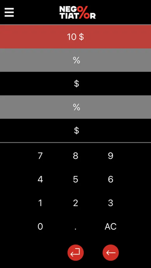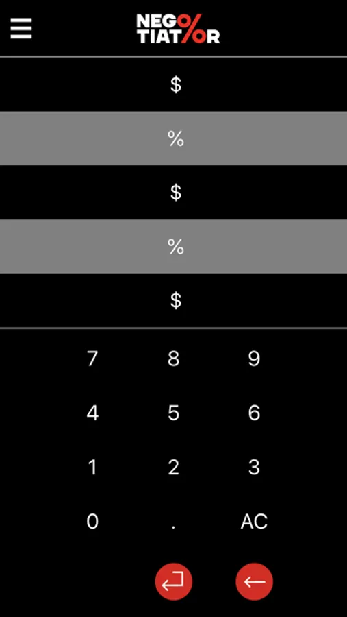 In comparison with a conventional calculator, this application allows us to eliminate 100% the possibility of human error that can easily occur in a broken down chain of concatenated calculations, and at the same time gives us an extremely higher iteration speed in the consecutive adjustment of the 5 values. And compared to a spreadsheet, NEGOTIATOR allows us, in a totally user friendly format, the construction and deconstruction of the sequence of values without having to create separate formulas, in a single preprogrammed algorithm.