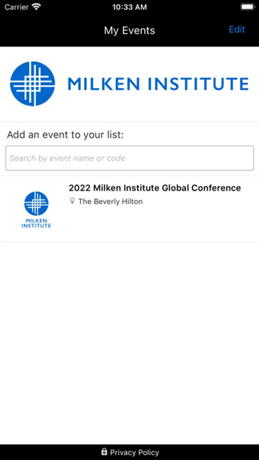 If you are attending a Milken Institute Event, you need to download the Milken Institute Events App