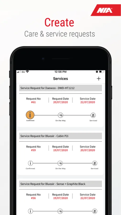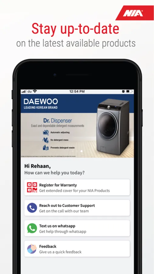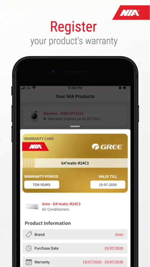 The NIA app is your one point contact for the care of Blueair - air purifiers, Daewoo - home appliances, and Gree - Air Conditioners in the UAE.