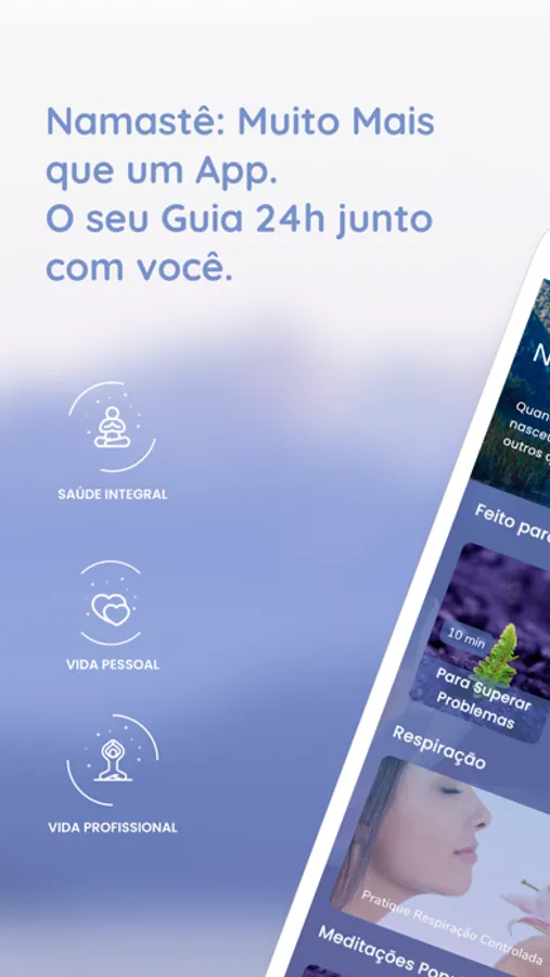 Muito Mais que um App. O Namastê será o seu Guia. 24h junto com você.