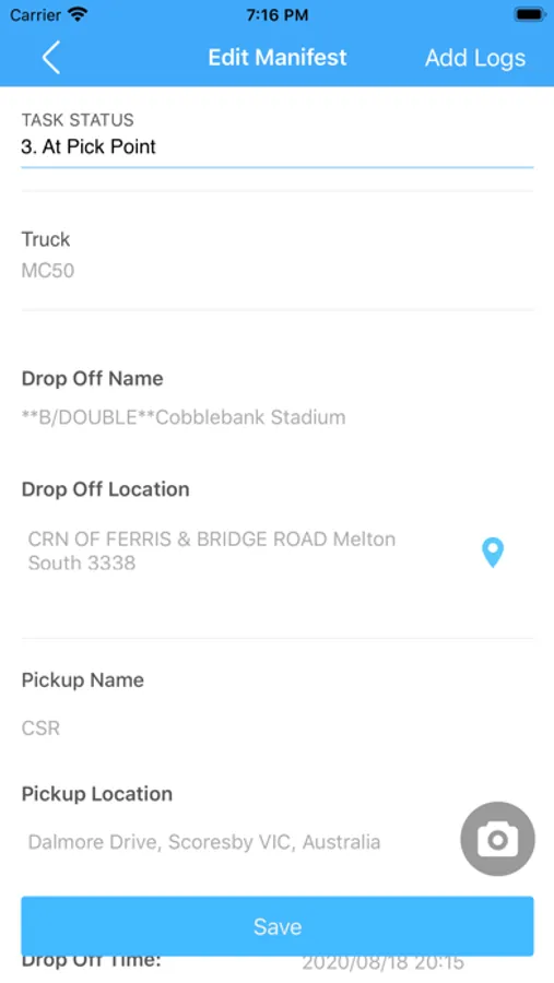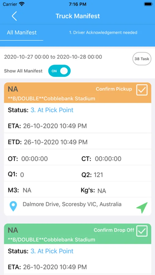 The Functionality in the module allows you to mark the manifest as completed, save images of proof of delivery, rough navigation. New functionality is added weekly and if you have any functionality you can request it.