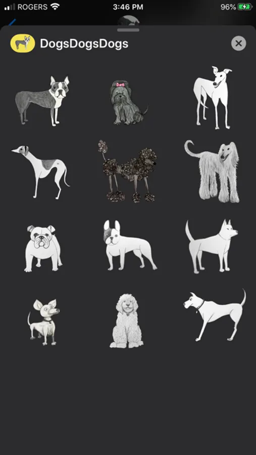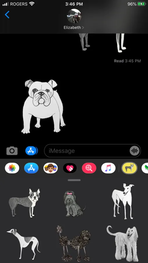 Illustrated Sticker Pack for iMessage by dog lover and artist Elizabeth Boylan.