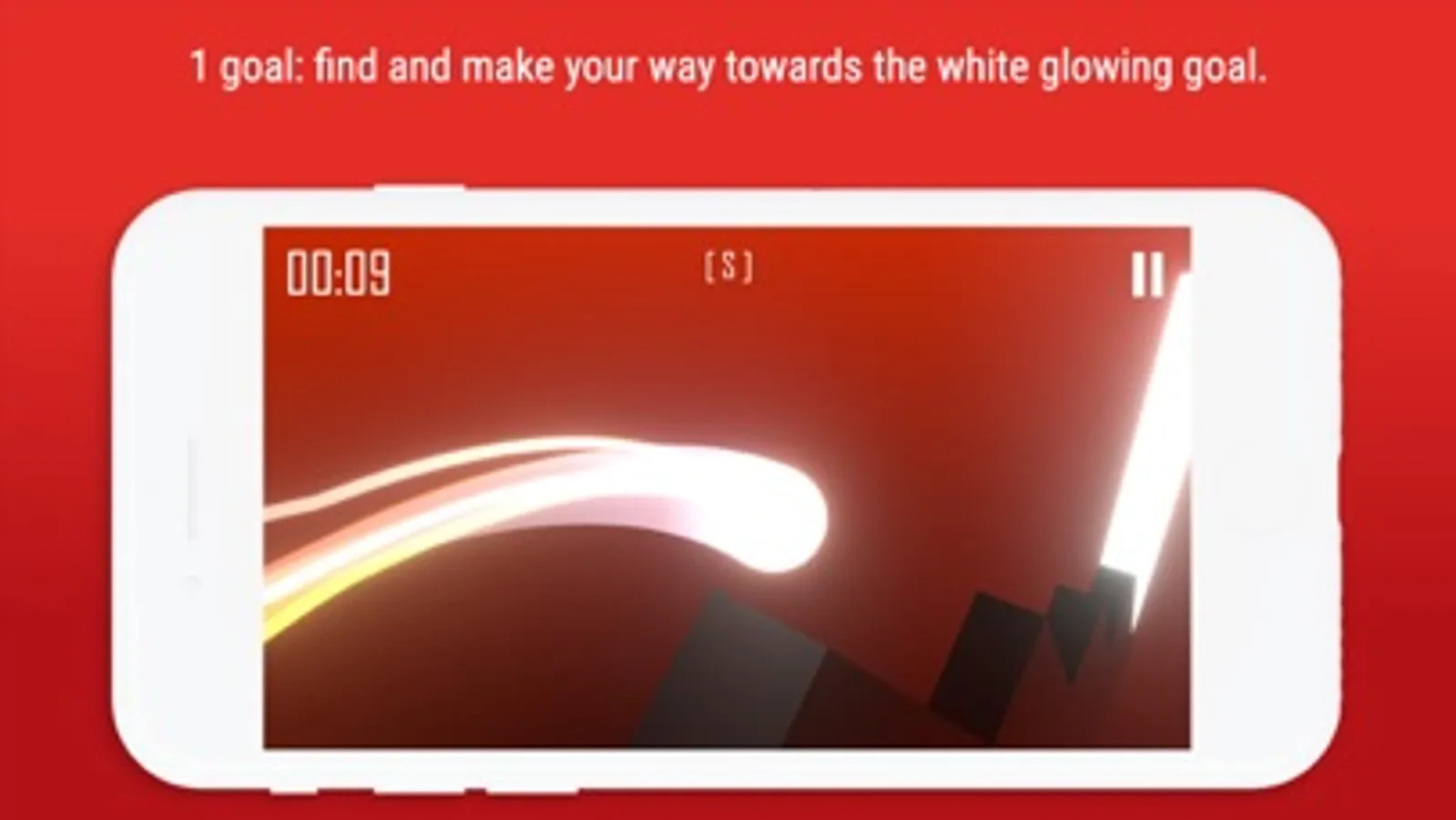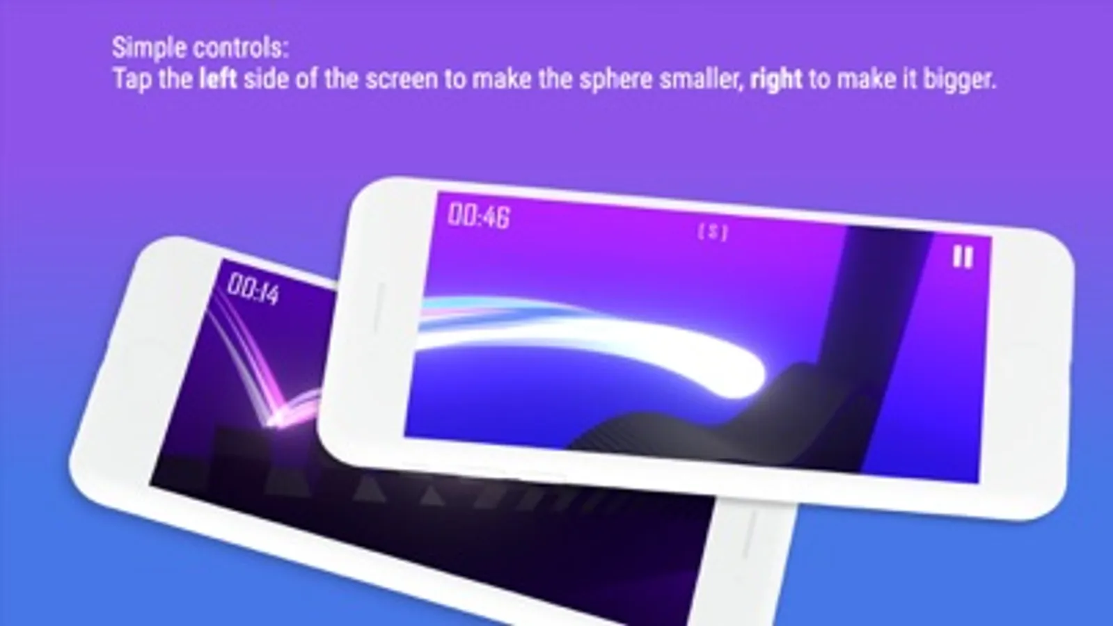 To make the sphere grow tap the right side of the screen. To shrink it, tap the left side. Avoid red objects, if you touch them it's over. Reach the white glowing goal. That's all you need to know!