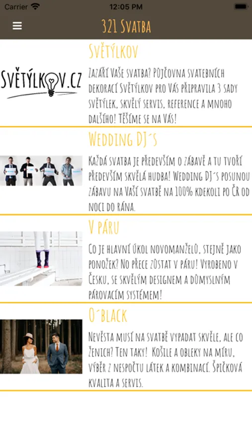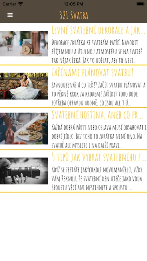 Kolik dnů zbývá do Vaší svatby? Nevíte? A máte už vše zařízeno? V aplikaci 321 Svatba si vytvoříte vlastní svatební odpočet a můžete načerpat inspiraci ke všemu, co má správná svatba obsahovat. Vytvořte si vlastní seznam hostů, najděte zajímavé partnery pro Vaši svatbu a zkrátka mějte vše pod kontrolou. 321 Svatba, váš pomocník při plánování svatby.