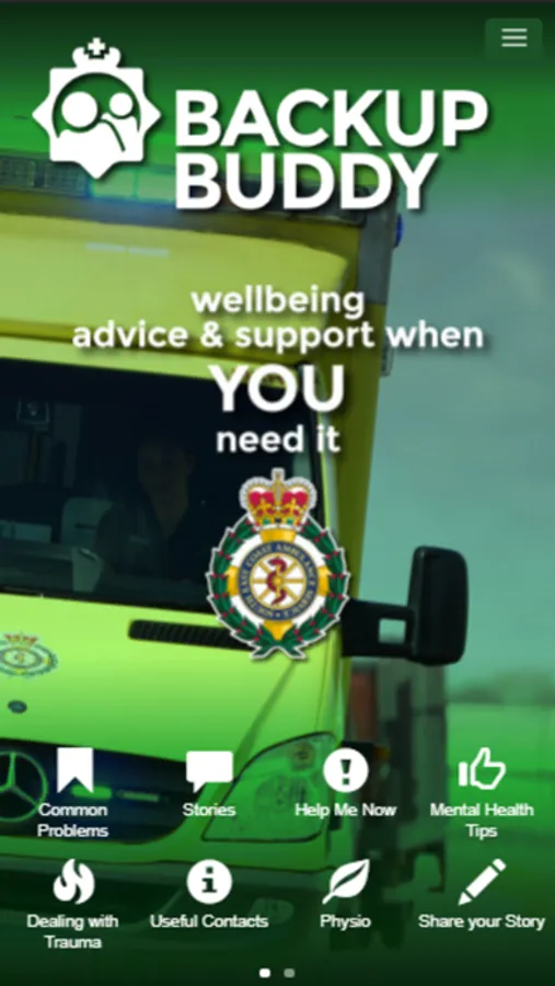 The Backup Buddy Support app is for the staff of the South East Coast Ambulance Service, designed to help with mental health issues.