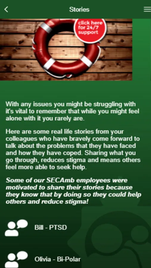 The App also includes staff's own stories which users can relate to, leading to feeling less isolated.