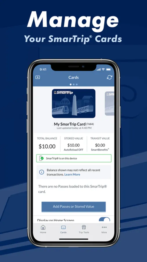 SECOND: Then add this optional SmarTrip app so you can register your cards, check SmartBenefits, setup Auto-Reload, or buy money-saving unlimited transit passes.