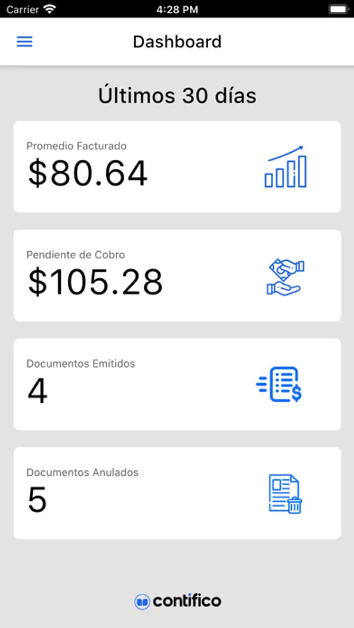 - Crear una factura, registrar un cobro y autorización de forma inmediata, sincronizada con Contifico Online.