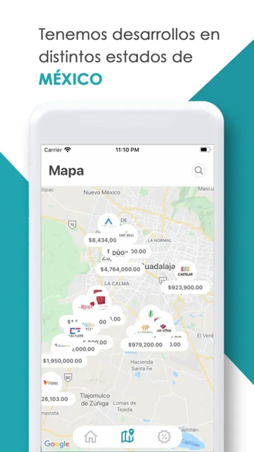 * Conocer la ubicación y rangos de precios por cada desarrollo.