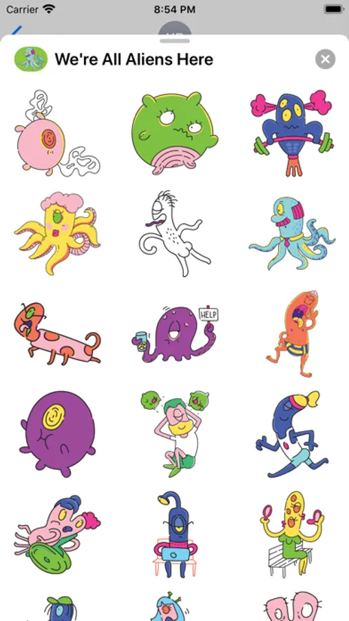 This sticker pack includes a lot of aliens of all shapes and sizes, attitudes and attributes, emotions and commotions.