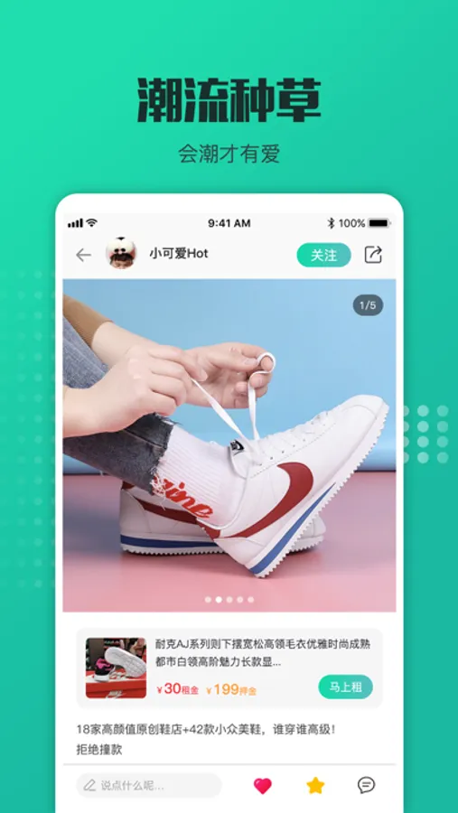 毒租社App是全球领先的时尚租赁服务平台,集装备租赁、球鞋潮品品质检验、互动潮流社区于一体的新一代潮流生活方式平台。作为潮牌租赁服务的开创者,毒租社App致力于通过专业的品质检验服务,为用户提供“租赁品质保障”的差异化价值。