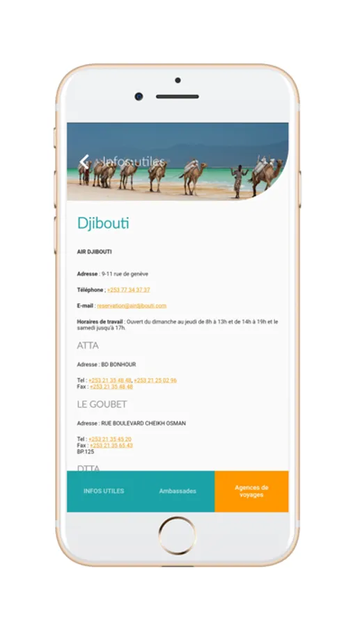 VisitDjibouti est conçue par l’office national du tourisme de Djibouti (ONTD), disponible en Français et en Anglais. Application gratuite