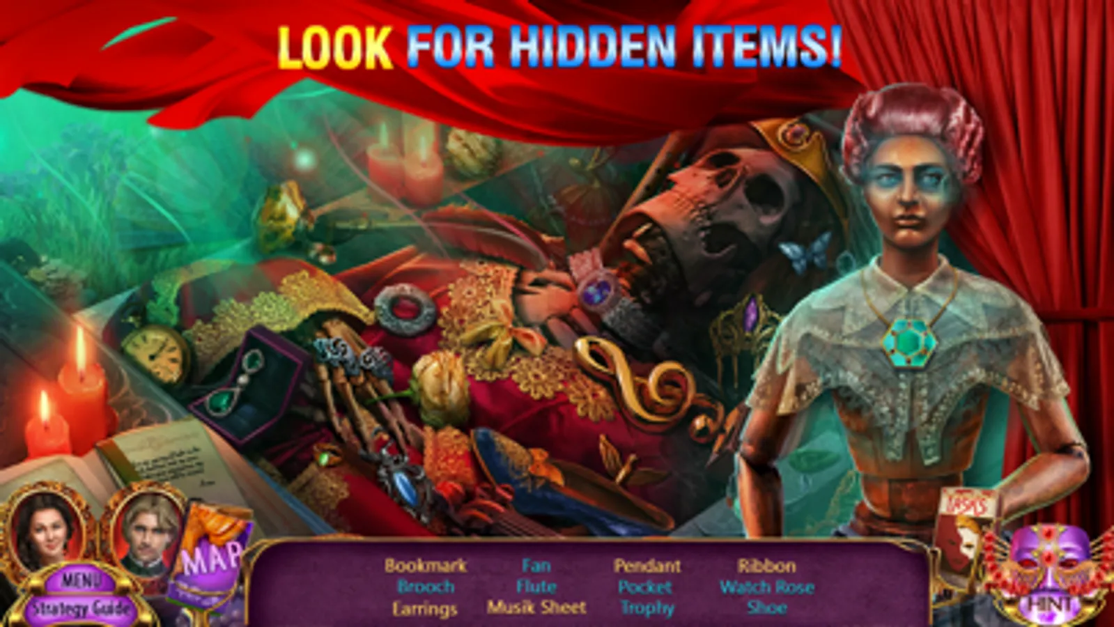 Download one of the most amazing free hidden object games – Dark Romance: Performance! Play the game for absolutely free, but if you feel stuck or don’t want to solve a mini-game, you may buy hints to help you proceed quicker!