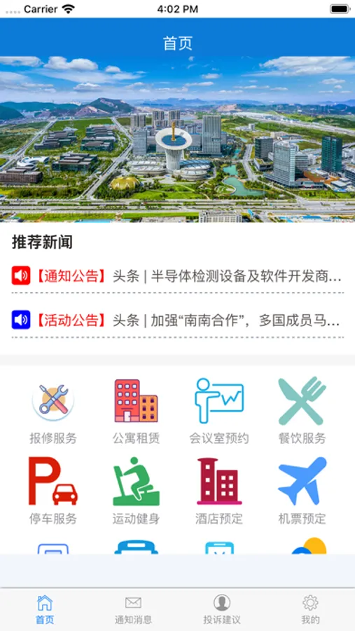武汉未来科技城APP平台目前提供公寓租赁、物业报修、会议预定、运动场馆预定、园区停车服务等相关服务;