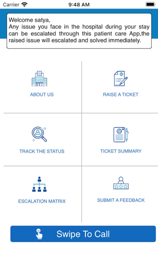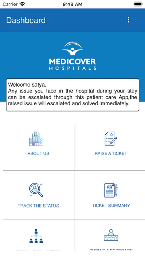 This application is for general public who avail their health services at our hospital, people who get admitted in our hospital can download the app and raise their service related support tickets & service feedback from the application. Our patient care team will attend the tickets and ensure the tickets are solved.