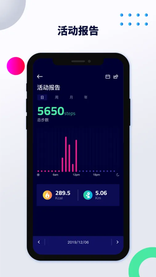 3)统计日、周、月、年的历史数据,更加了解自己的身体变化