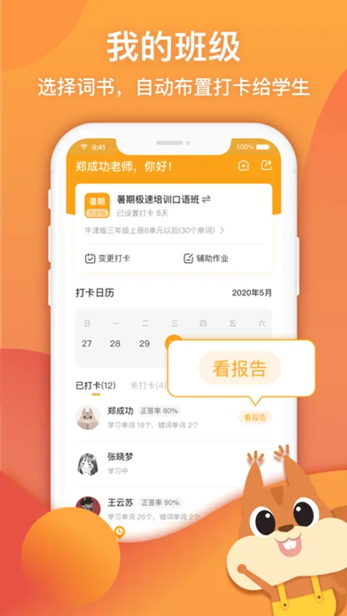 因人而教,针对每个学生的学习情况,更有针对性的布置单词作业,三大作业类型,练习、听力、打卡。