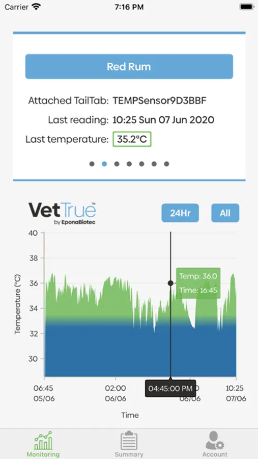 VetTrue from Epona Biotec offers convenient, round-the-clock temperature monitoring for horses. Easy to use for owners and veterinary professionals alike, the app is used in conjunction with VetTrue TailTabs, our patented lightweight monitors, which are affixed quickly and easily to the underside of the horse’s tail.