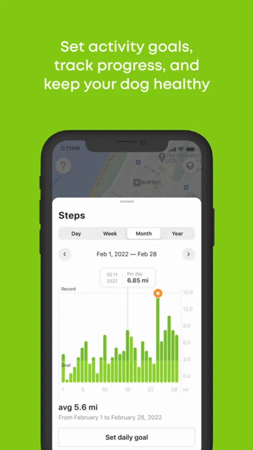 Get important information about your dog’s daily activity, including time spent active, distance traveled, steps taken, rest time, and calories burned. Set (and crush) daily exercise goals, track progress, and view your walk history to see how far you’ve come.