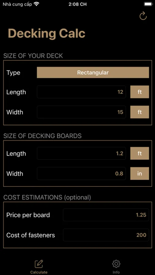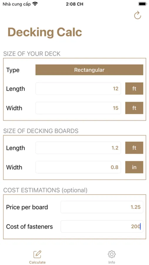 Use this App to calculate determine the number of decking boards and fasteners needed. It is also a tool for estimating the cost to build a deck (mainly focusing on deck flooring).