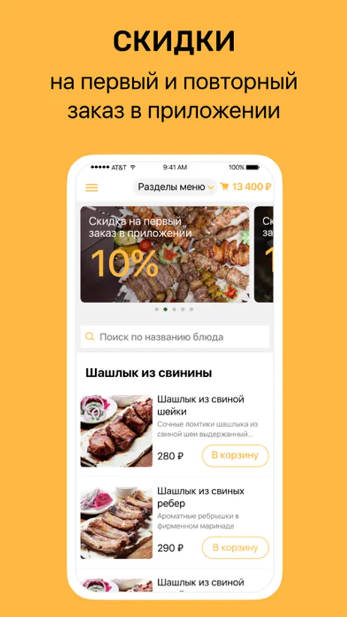 — дарим скидку 10% на первый заказ через приложение и 7% скидку на повторный заказ в течение следующих 30 дней;