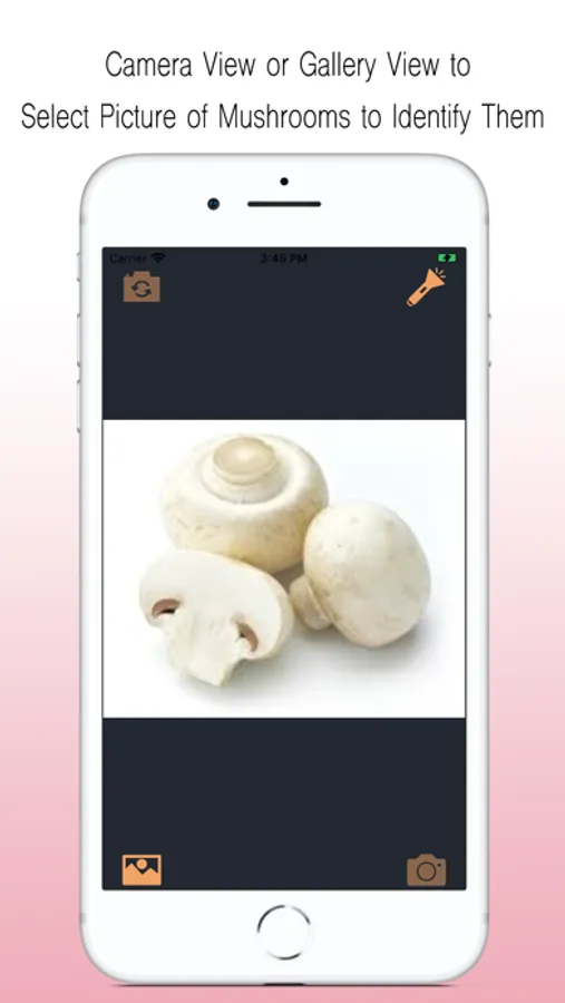 The mushroom identifier makes use of your phone camera to take a picture from a mushroom or a mushroom picture which you have previously taken and is in your photo gallery. Afterwards, it will process the picture using a machine learning model including 84 different mushrooms and gives you the top 3 mushrooms names which match the best with the model together with a confidence level.