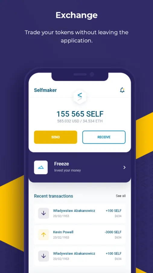 The SelfWallet application allows you to securely store SELF tokens. In addition, SelfWallet users through the application can also track the development of SelfMaker Group and freeze their tokens in order to obtain additional bonuses with the development of SelfMaker Group.