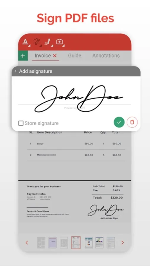 Add photos and images to your PDF, you can choose the photo from the gallery or take pictures with the camera to add the image to the PDF with the size and shape you want.
