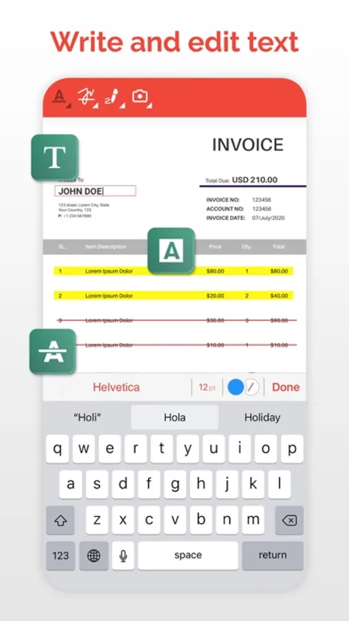 Built-in text editor to underline or cross out the text of your PDF. Edit PDF by writing text and then you can highlight, underline or cross out the words you want.