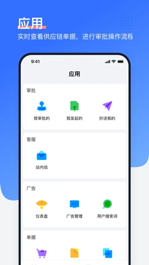 3.应用:随时操作广告或站内信,移动办公审批