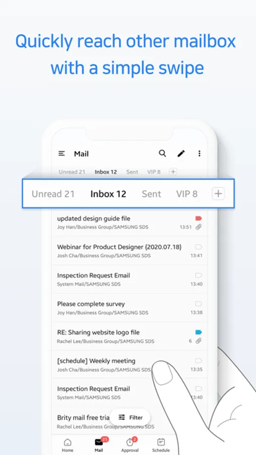 - Filter: With a single touch, you can quickly find the mail you want.