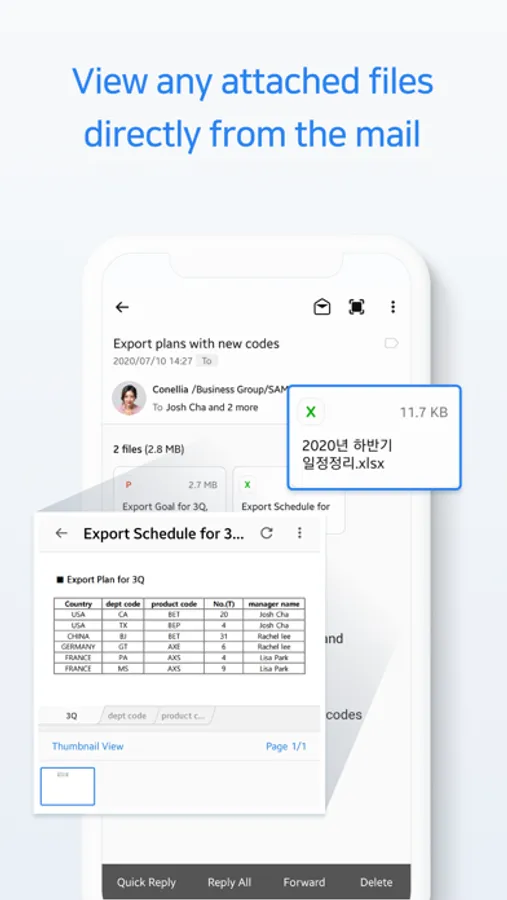 - Attachment : View any attached files without installing a viewer.