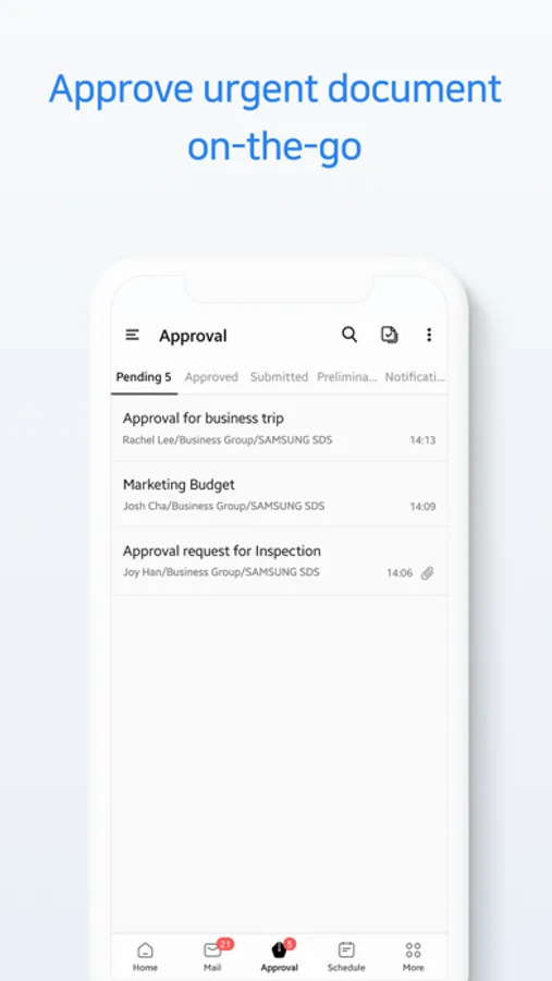 You can approve urgent document on the go. You can also view completed and pending approvals.