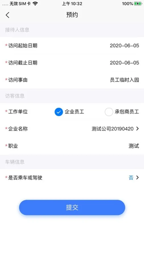 2.园区员工进行临时预约,在此APP可快捷预约入园