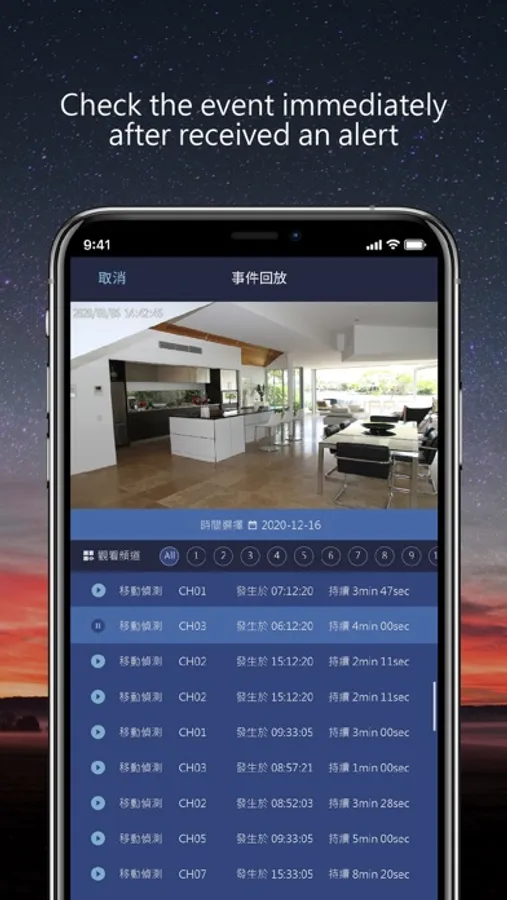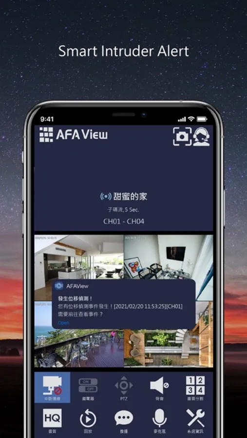 AFAView is a H.264+H.265 DVR remote viewer. It can be viewed in non-landscape or landscape mode after filling in IP, port, username, and password.