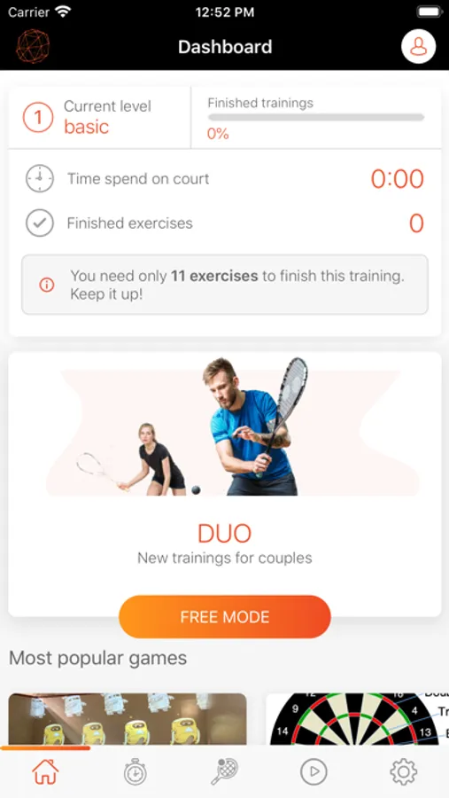 One hour of training a week is enough to learn the basics of beats without the need for a personal trainer or a play partner. However, if you like meeting another player on the court, you can use the application for training for two, also according to the level of experience.