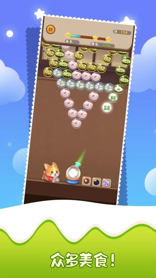 好吃、好玩、好看、益智、解压的食物主题的美食消消游戏。