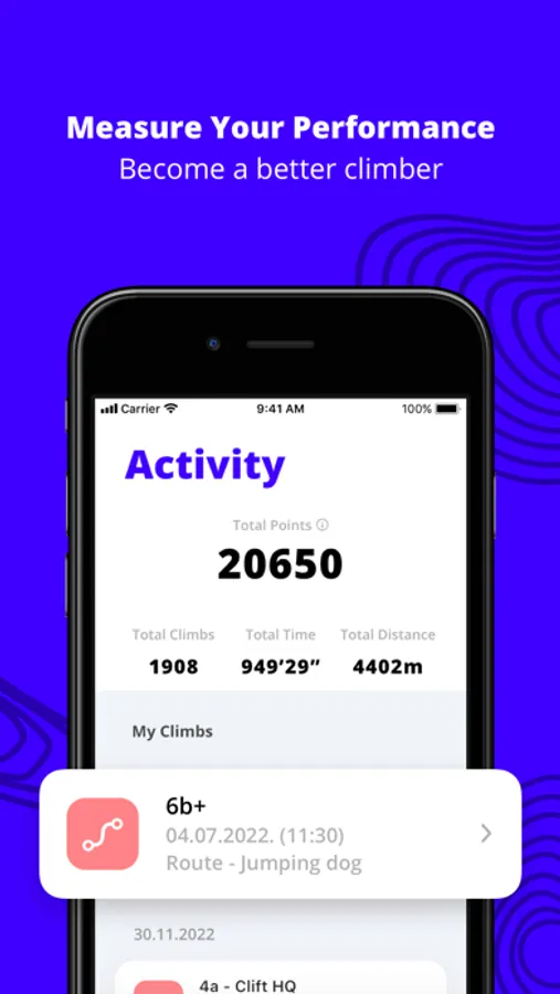 Keep track of your sport climbing, bouldering or training sessions. The auto-saved and synced climbs include duration, length, grade, and more.