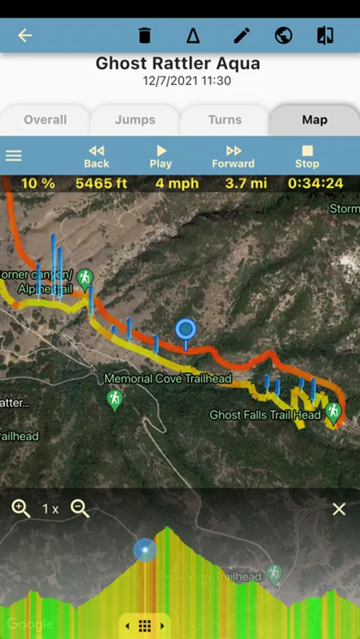 - 3d interactive map showing actual path traveled in 3 dimensions with color-coded elevation grade