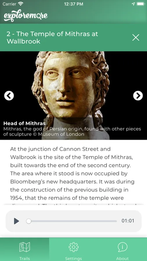 This new version of the app has been developed in partnership with The City of London Corporation. If you’re in London, choose a trail and use the map to navigate to points of interest along the routes. Content at each location contains audio, text and pictures which are triggered upon reaching each pin point.