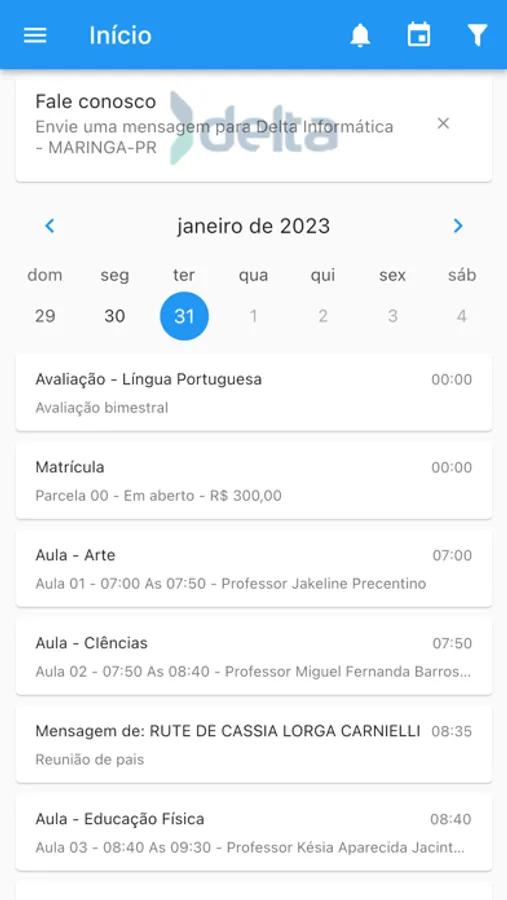 Aplicativo voltado para alunos e responsáveis, matriculados em escolas que utilizam o sistema Delta SGE. Nele os usuários poderão comunicar-se com a escola, consultar a área acadêmica e financeira do aluno. Segue lista concisa das principais funcionalidades: