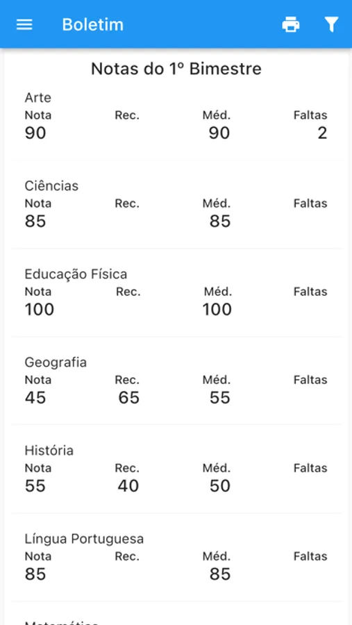 - Consultar o boletim do aluno.