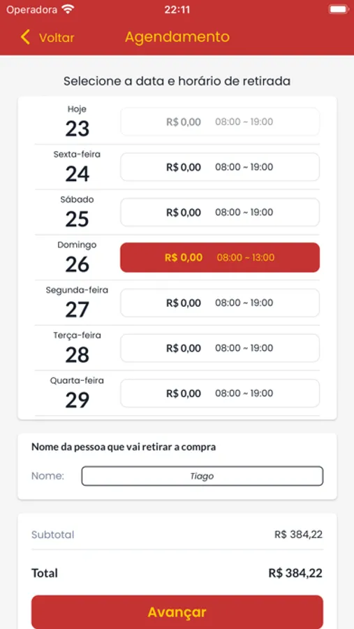 4 - Selecione o horário de entrega ou retirada.